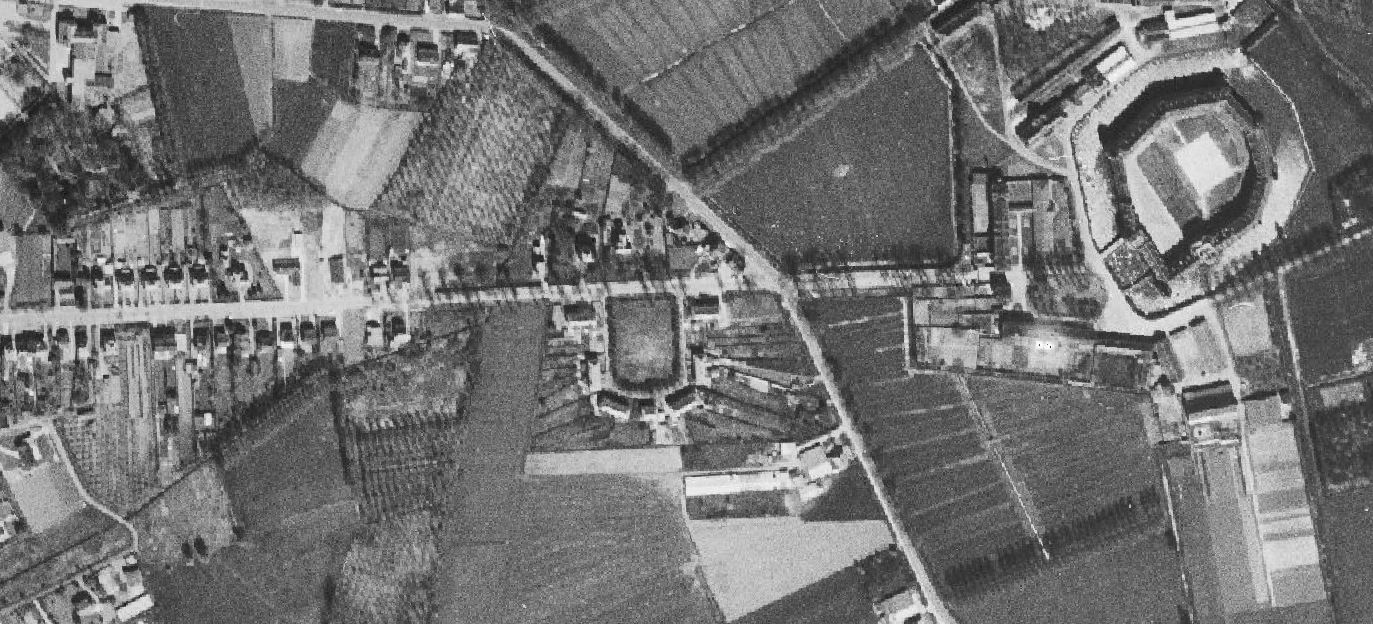 Op de hoofdfoto zie je de inplanting van de wijk langs de Lindendreef met het Gelmelslot ten oosten (luchtfoto 1971 via geopunt.be).