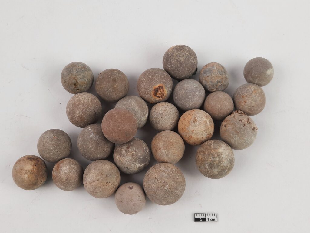 - Afb. 7: Knikkers in natuursteen, diam. ca. 17 mm (Erfgoed Noorderkempen, inv.nr. 2009_073_1065_01, opgraving Jacobsmarkt, context beerput S399 – contextdatering 1860 – 1925)